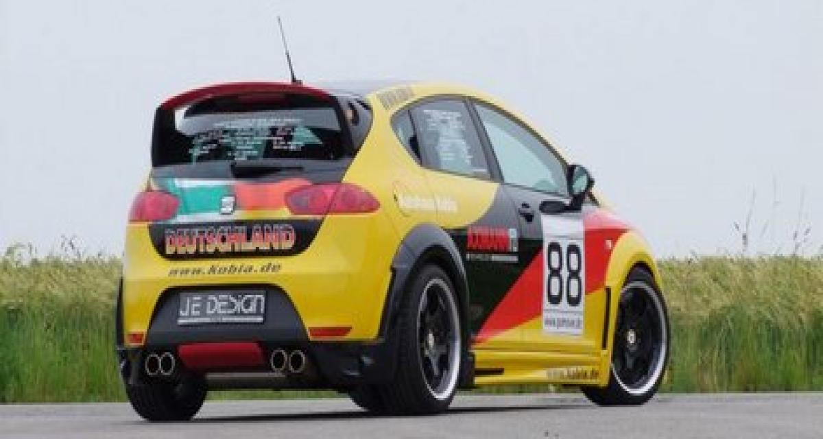 Il y a environ quinze jours nous vous avons présenté cette Seat Leon Cupra R préparée par un tandem composé de JE Design et Kobia. Adoptant le kit mécanique WCE récemment vu sur la Leon Cupra R éponyme proposée en Suisse, cette version 200 % National Mannschaft fait aussi la part belle au pays organisateur de l’actuelle coupe du monde de football. Vous aviez apprécié cette Leon Cupra R extrêmement bariolée ? La revoici à travers de nouvelles images.