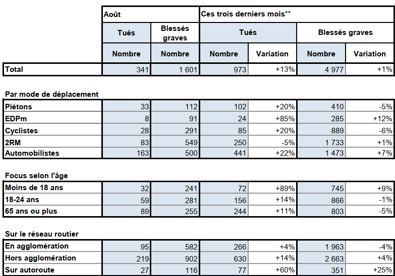 Le bilan de l’ONISR pour le mois d’août 2025 n’est pas brillant. Avec 341 décès sur les routes de France métropolitaine, c’est le pire mois d’août depuis 2011. En 2024, 290 personnes avaient perdu la vie sur ce même mois. Cela représente +17,6 % de hausse sur un an.