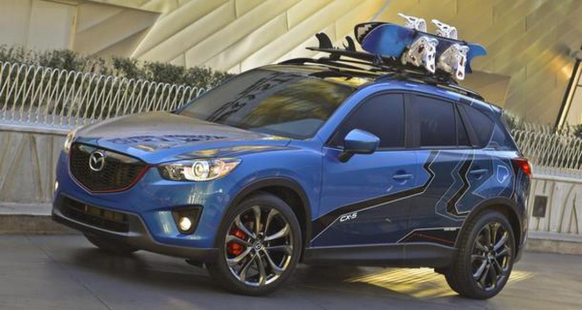 Enfin le dernier (ci-dessous) n’est donc autre que le CX-5 Dempsey comme l’acteur et pilote éponyme. Animé par le 2,2 l diesel Skyactiv, il gagne un coffre de toit et un porte-vélo qui en transporte un. Bizarre.