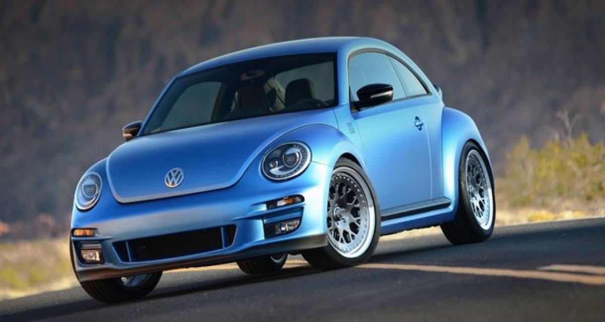 On peut aussi évoquer la Super Beetle qui laisse découvrir ses jantes Split Formula TR de 19″, sa livrée de carrosserie au ton bleu azure métallisé, ses gommes Michelin Pilot Super Sport ou encore ses sièges sport Recaro. A signaler aussi la Beetle Beach Cruiser au patronyme évocateur et revendiquant 400 ch (image ci-dessous).
