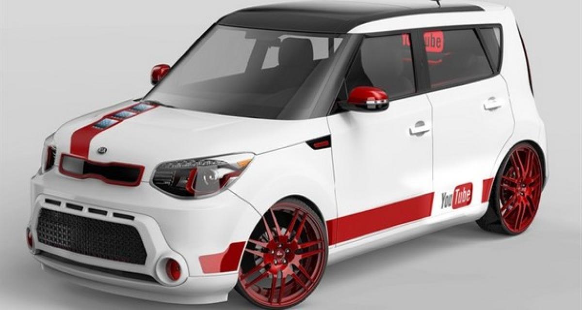 Partenaire officiel de la récente cérémonie YouTube Music Awards qui vient de se tenir en direct sur la toile avec des heures de concert notamment, Kia surfe sur l’événement et saute sur l’occasion afin de présenter cette version « YouTubisée » de la Soul réalisée en partenariat avec Lux Motorwerks et Rides Magazine. On retrouve les couleurs spécifiques tandis que l’auto hérite de jantes particulières, webcam, iPad Mini et Mac Mini avec connexion sur la toile…