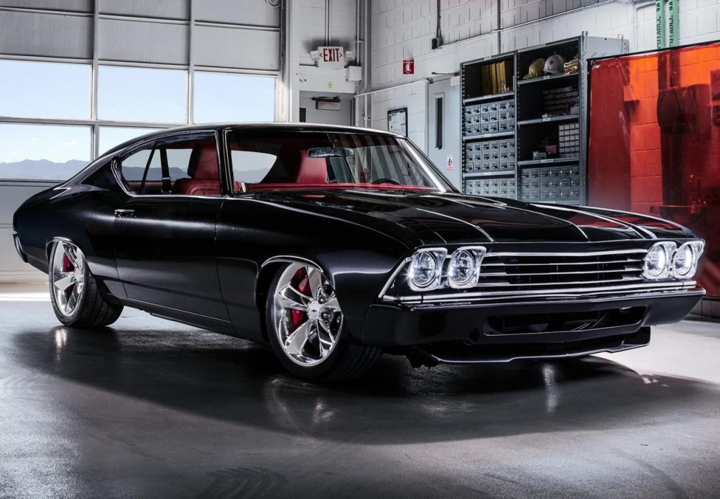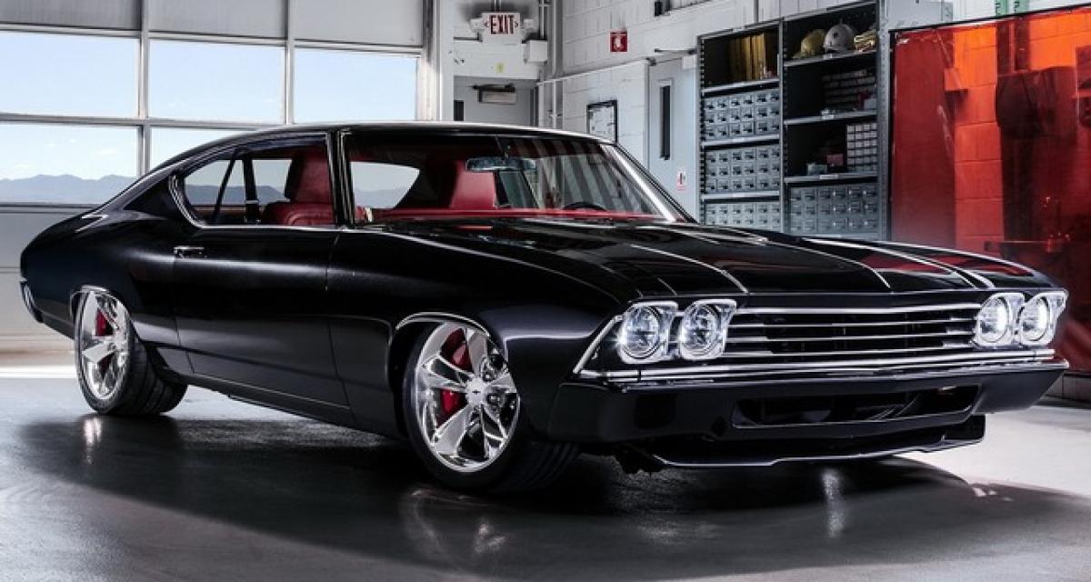 Dans sa sombre livrée de carrosserie noire (qui contraste avec l’habitacle en rouge) et dotée de jantes alliage léger de 18 » et de 20 » la belle Chevrolet Chevelle Slammer ne manque pas de style… Ni de muscles cachés sous le capot.