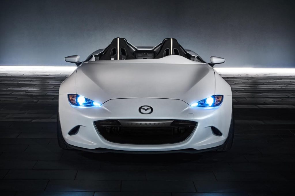 Non tout d’abord concernant celui baptisé Speedster Evolution puisque, comme son nom l’indique justement, il s’agit plus d’une nouvelle déclinaison du MX-5 Speedster Concept révélé à la même occasion l’an passé.