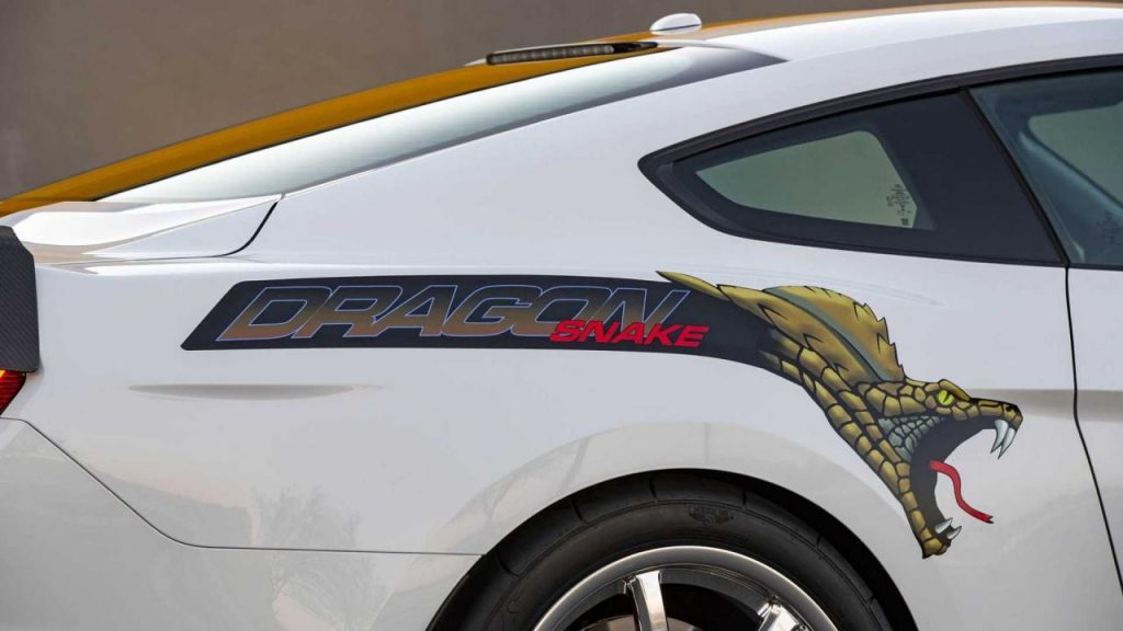 Dévoilée dans le cadre du SEMA Show de Las Vegas sous forme de concept, la Dragon Snake ajoute plus de puissance à la GT500 (plus de 800 chevaux contre environ 770 disponibles dans la GT500 de base), grâce à l’adoption d’un nouveau compresseur, mais aucune donnée n’a été précisée sur le couple qui est sans nul doute très venimeux. En conséquence, la transmission automatique à double embrayage sept rapports a été modifiée pour faire face à la puissance supplémentaire fournie par le V8.