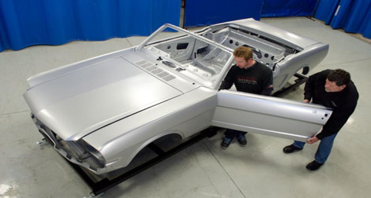 Ford ajoute à présent une pièce de taille : une caisse complète, réalisée avec les techniques actuelles de production, et donc avec des aciers plus résistants et mieux protégés contre la rouille… Elle pourra ainsi remplacer une caisse endommagée, et équipée du moteur, de la transmission ou des suspensions du véhicule d’origine. Mais avec cette nouvelle référence, il est aussi quasiment possible de construire en totalité une Mustang à partir du catalogue de pièces d’origine proposées ou certifiées par Ford. Seules quelques détails de finition de carrosserie ne sont pas proposés…