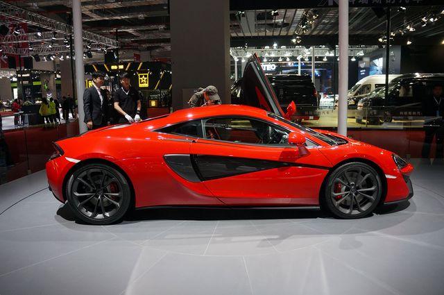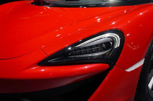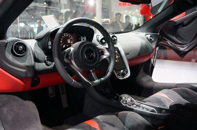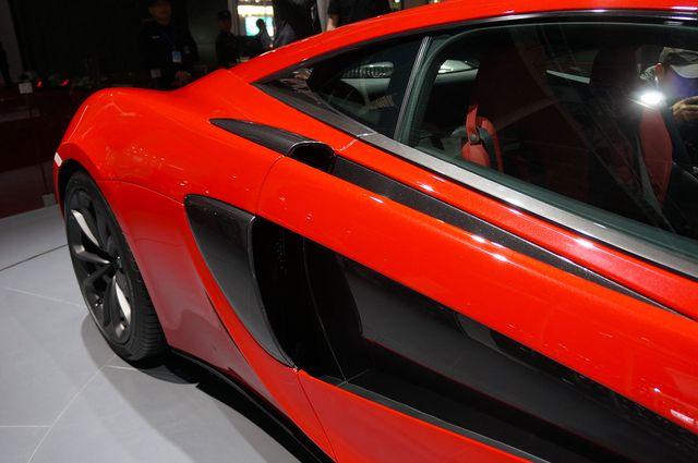Extérieurement, la 540C et la 570S sont quasiment identiques…. à quelques détails près. En effet, sur la 540C Coupé, le centre du diffuseur arrière est légèrement modifié tandis que les jupes latérales ont été retravaillées et la coque des rétroviseurs se parent de la teinte de carrosserie (rouge pour le modèle exposé). McLaren explique aussi que le bouclier avant a été « finement » revu (cherchez l’erreur…) et que les suspensions sont plus souples que la 570S Coupé.