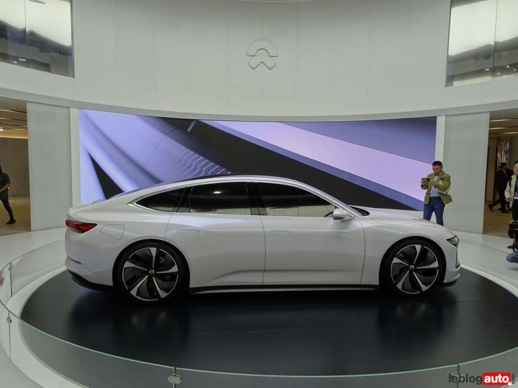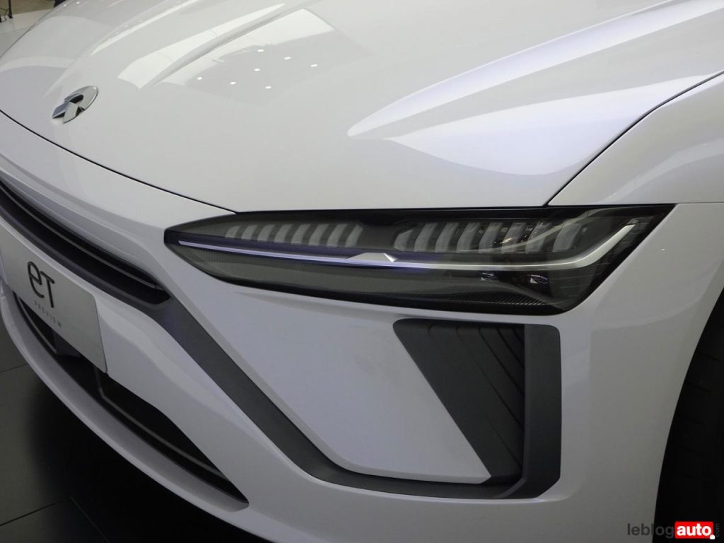 L’avant très plat qui convient plutôt bien aux ES6 et ES8 est moins séduisant sur une berline, qui semble ici manquer d’un peu de galbe à l’avant. Vue de profil, l’effet de berline élancée semble un peu cassé par la vitre de custode imposante.