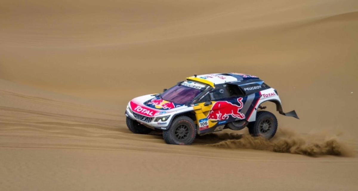 [Mise à jour : Le Peugeot 3008 DKR Maxi de Loeb/Elena est arrivé à bon port et pouvait être réparé pour demain. Malheureusement, Loeb souffre d’une lourde entorse au majeur gauche. Il préfère jeter l’éponge, en accord avec l’équipe.]