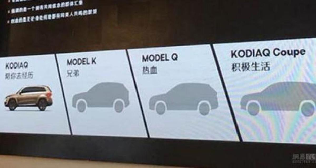 Au Kodiaq déjà vendu, le constructeur tchèque ajoutera le futur Yeti surpris lors de tests routiers sur le sol chinois, le Kodiaq coupé et un quatrième modèle inconnu au bataillon.