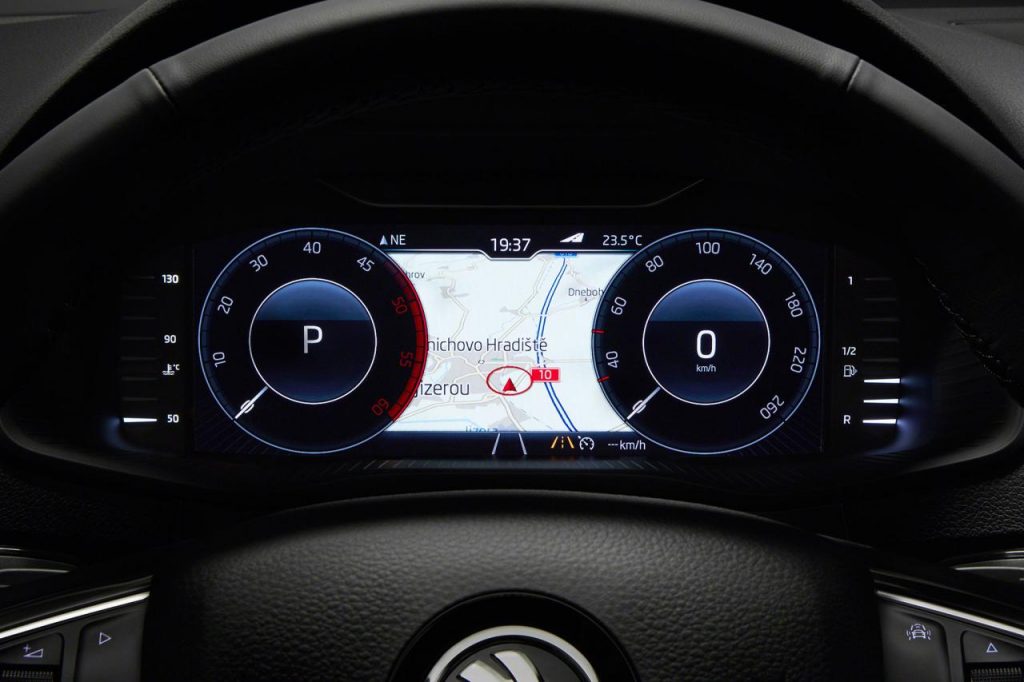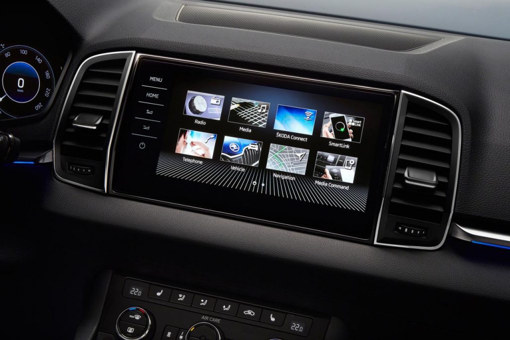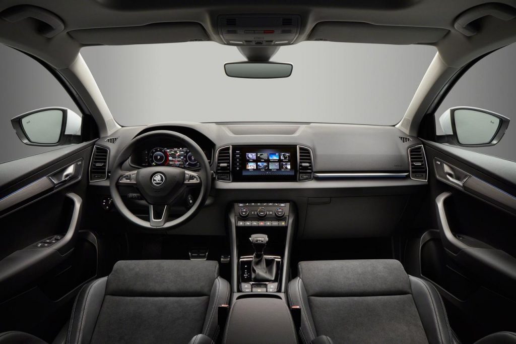 A l’intérieur, le mobilier est entièrement différent, tout en faisant appel à de nombreux composants communs. Skoda a néanmoins apposé sa touche sur les aspects pratiques. Avec surtout donc l’option de sièges arrière Varioflex, soit trois sièges individuels coulissants et amovibles. Les occupants arrière profitent également de tablettes rabattables, intégrant un porte-gobelet. Le siège passager se rabat en tablette pour le chargement d’objets longs, et le coffre comprend plusieurs bacs, ainsi que le système de barres latérales pour l’ancrage de différents accessoires. L’équipement pourra aussi comprendre un volant, des sièges avant et arrière (places latérales) chauffants, ainsi que la désormais classique Phonebox. Cette dernière comprend à la fois la recharge par induction et le renvoi des émissions du téléphone vers l’antenne extérieure.