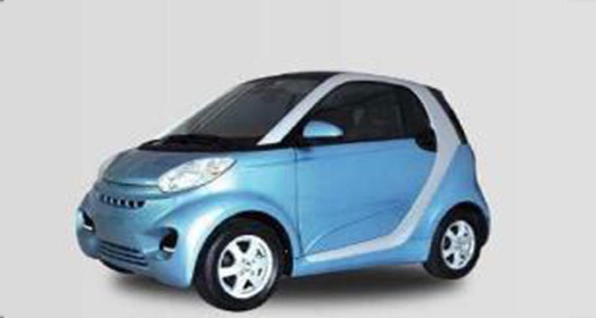 Une petite voiture qui ressemble à s’y méprendre à une Smart Fortwo, affublée d’un visage modifié, mais toujours bien identifiable avec sa structure partiellement apparente et de couleur différenciée…
