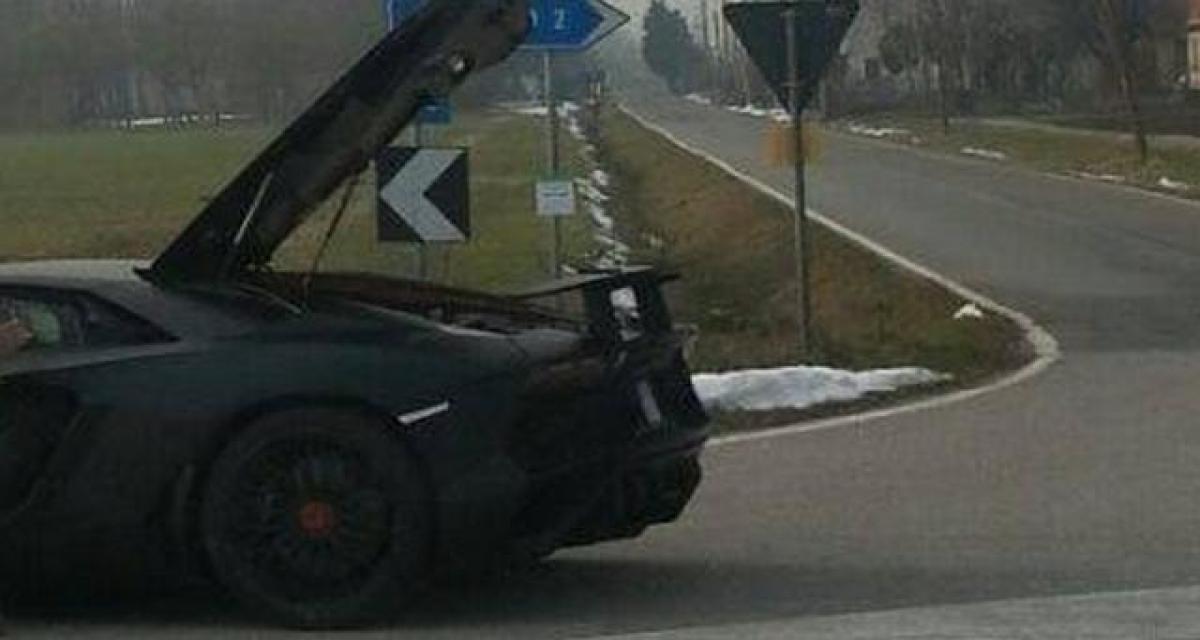Cette fois, c’est bien un exemplaire de la prochaine Lamborghini Aventador Super Veloce qui a (visiblement) été victime d’un petit pépin (la photo en grand). Pépin mécanique ? Pépin technique ? « Vulgaire » panne d’essence ? Impossible à déterminer avec assurance. Seule certitude, la supercar hautes performances du constructeur de Sant’Agata Bolognese est à l’arrêt sur la route, au point mort sur la voie publique.