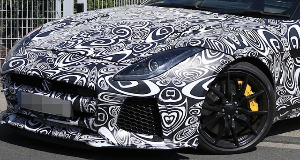 Les équipes du constructeur britannique poursuivent le développement de la future version la plus pointue de la F-Type. Le matou de nouveau surpris (les spyshots) s’annonce agressif.