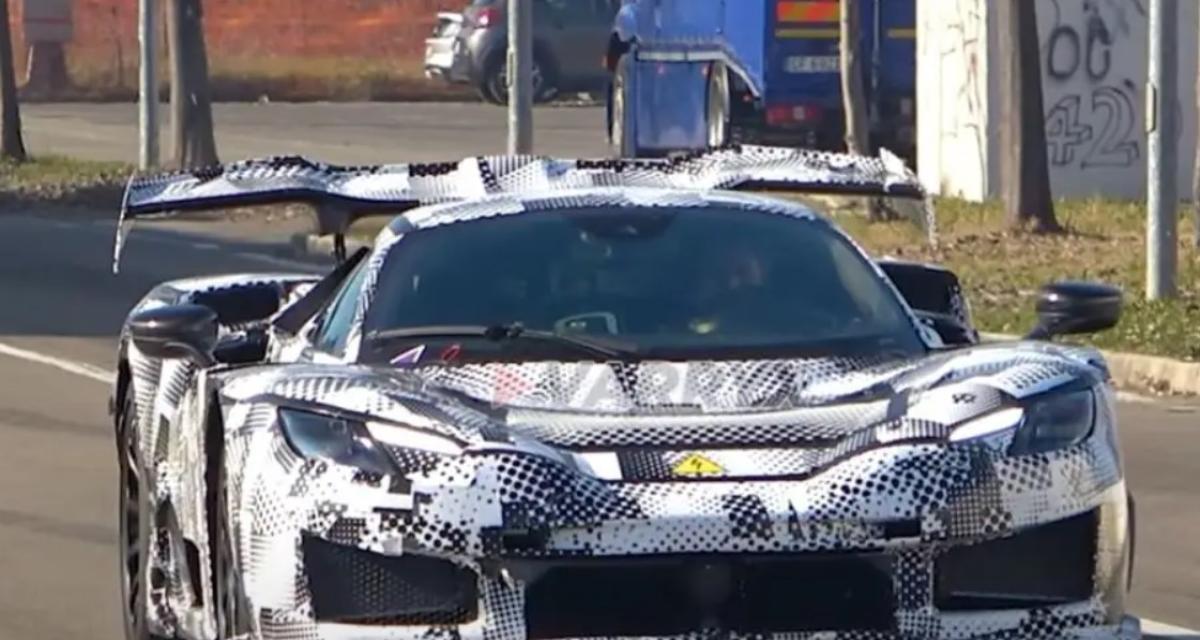 Les formes, bien que camouflées, suggèrent des dimensions très généreuses et un profil digne d'un prototype de piste. Elle ressemble à une voiture de Sport échappée du Mans avec de grands passages de roues qui laissent présager d’un refroidissement accru pour le monstre qui rugira derrière l’habitacle. Derrière, on aperçoit surtout un grand aileron, qui n'apparaissait plus sur les supercars Ferrari depuis la F50. Il ne doit pas s'agir d'une structure fixe, mais d'un appendice actif, qui s'abaisse et s'élève selon les besoins. Cela ressort de sa physionomie, qui suit fidèlement les caractéristiques de la base d'appui, dans un arrière très large, comme l'exige une voiture de ce niveau.