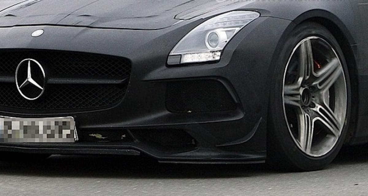 Tiens, cela faisait quelques semaines maintenant que la future Mercedes SLS AMG Black Series n’avait pas pointé son étoile proéminente… La revoici aujourd’hui à travers de nouvelles photographies qui laissent découvrir que le développement du prototype continue de battre son plein, un prototype qui profite de cette sortie publique pour laisser plus clairement apparaître ses futures lignes…Peut-être envisageable pour le prochain salon de Genève l’année prochaine, la Mercedes SLS AMG Black Series continue de parfaire son développement. Les dernières photographies prises sur le vif (et relayées ici en grand) nous permettent surtout de découvrir que le camouflage s’estompe volontiers.