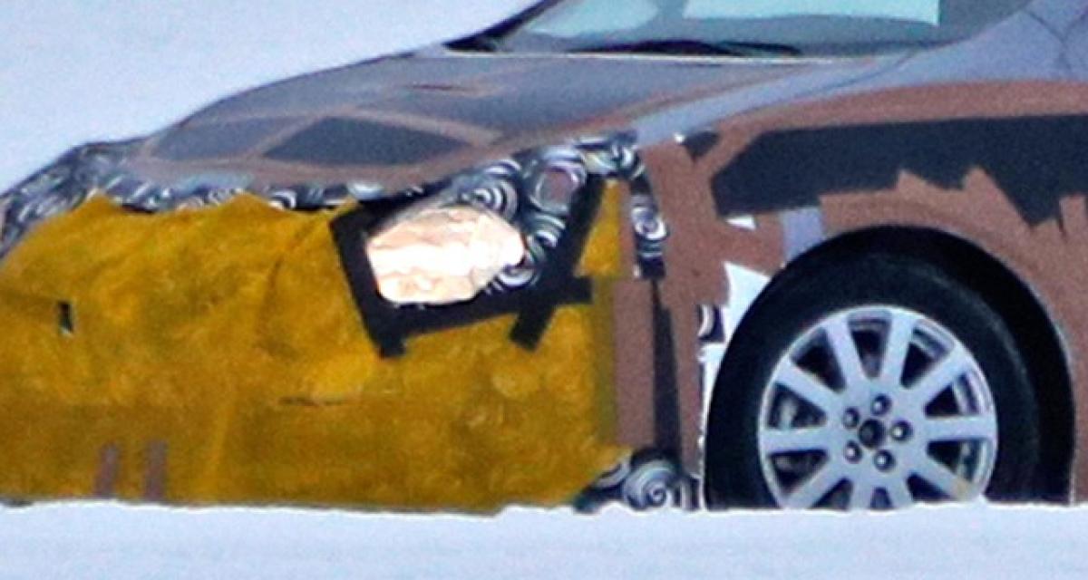 Impossible de percevoir clairement quelque chose de concret : le prototype se révèle trop camouflé de l’avant à l’arrière en passant par les flancs et cette armure tronque les proportions de la berline. La face avant ferait presque peur…