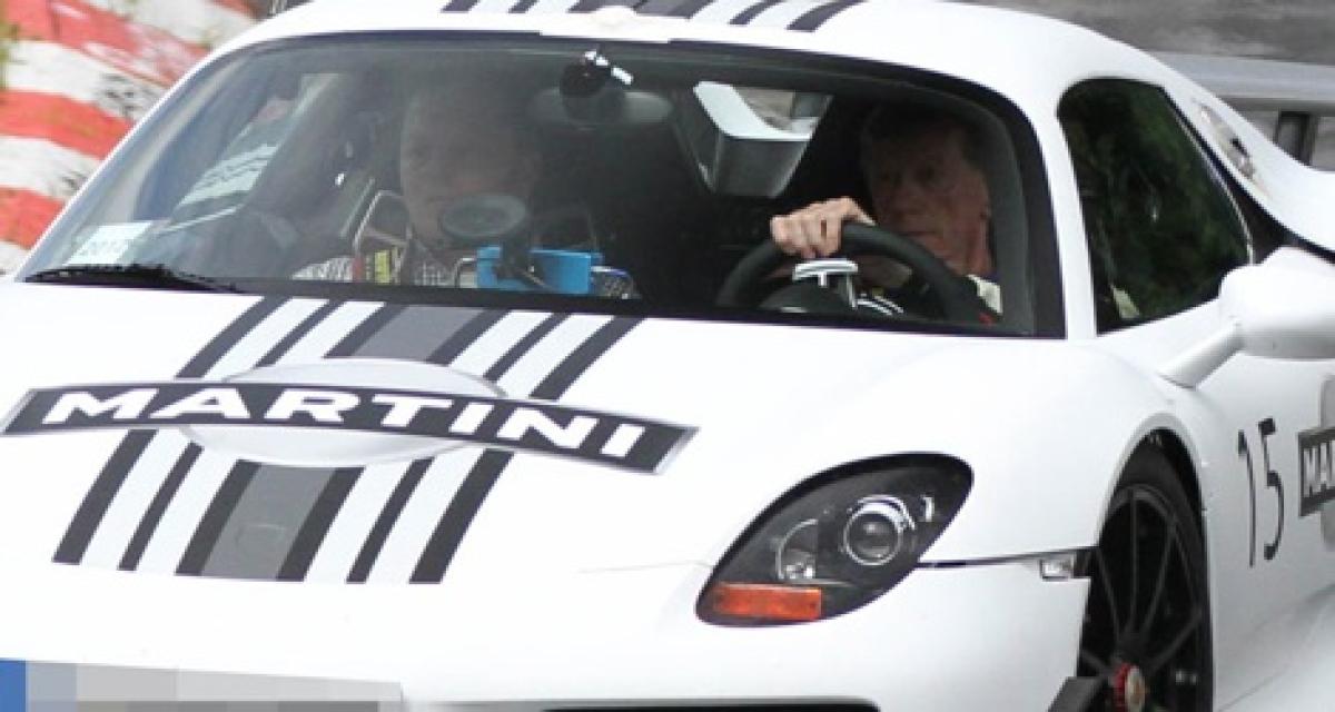 Le grand Walter au volant d’une Porsche sur le Nordschleife ça n’est pas vraiment une surprise, à peine une information tant ce circuit est devenu comme le bureau de cet employé modèle de la marque de Stuttgart. La grande nouveauté du jour, c’est le « camouflage » du prototype. C’est en effet dans une étonnante décoration Martini désaturée que la supercar hybride s’est offerte aux téléobjectifs des photographes planqués dans l’enfer vert. Martini Racing et Porsche c’est une vieille et longue histoire entamée avec la 917 et c’est bien cette nostalgie que le constructeur veut ranimer en vue du retour en endurance en 2014, comme il l’avait fait il y a quelque temps avec une autre série de clichés (ci-dessous) montrant la 918 affublée des filets blancs des 917 « Salzburg ». La communication rétrofuturiste autour de cette voiture est parfaitement maîtrisée.