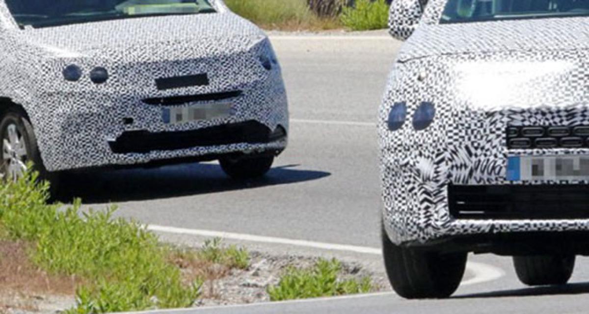 Le duo de petits utilitaires de PSA, ainsi que leurs versions familiales, sera donc remplacé en 2018. Et les prototypes sont déjà en circulation, avec ici un aperçu des deux versions, Citroën Berlingo en tête et Peugeot Partner en arrière plan. Le Citroën est aisément identifiable avec ses optiques en deux étages et sa calandre plus basse, au motif bien visible sur cet exemplaire. Le Peugeot adopte une disposition plus classique, mais hormis cette face avant les deux modèles seront identiques.