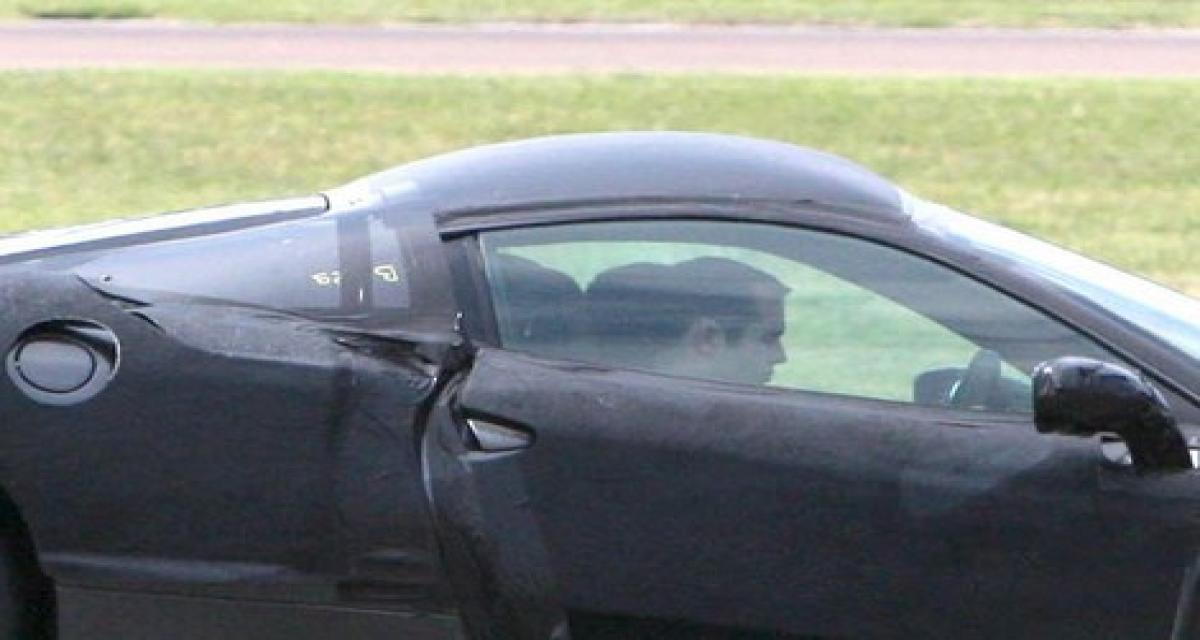 Bon, il est vrai qu’elle doit bien avoir une vingtaine de kilos sumplémentaires à cause des nombreux morceaux de bande adhésive qui couvrent la carrosserie, mais l’on peut enfin apercevoir la ligne générale, qui est, vue de profil, bien plus racée que la F430, les vitres latérales me font penser à la Diablo du fait qu’elle soient très plongeantes , bien entendu tout le monde aura remarqué cette grossière bosse de toit qui n’est pas sans intriger. A noter aussi l’abandon des quatres phares ronds arrières pour deux simples. Autres bizarrerie, Ferrari abandonnerai-t-elle les traditionelles sorties d’échappements pour des modèles plus fantaisistes? Ainsi la California y a gagné deux doubles échappement verticaux, la F450 elle a droit à un clin d’oeil au passé, personne n’aura oublié la F40 et son triple échappements central.