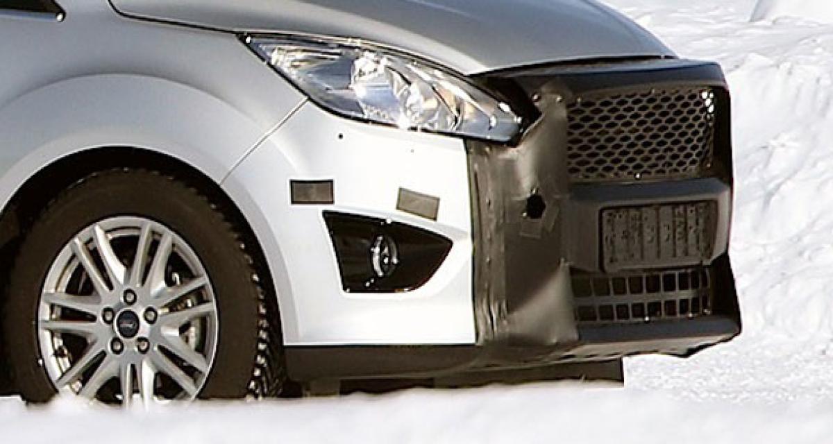 Apparus sur la Focus Electric, la calandre chromée est ensuite apparue sur le C-Max Hybrid, puis sur les modèles centraux de la gamme, Fusion, Fiesta… et jusqu’aux utilitaires. Pour rendre sa gamme plus homogène, Ford ne manquera pas d’associer le C-MAx et la Focus à cet ensemble. Le monospace a été surpris en pleins tests hivernaux, affublé d’un large cache sur son museau. Cache qui montre une nouvelle disposition des entrées d’air : plus large en haut, et plus étroit en bas, soit l’inverse de la situation actuelle.
