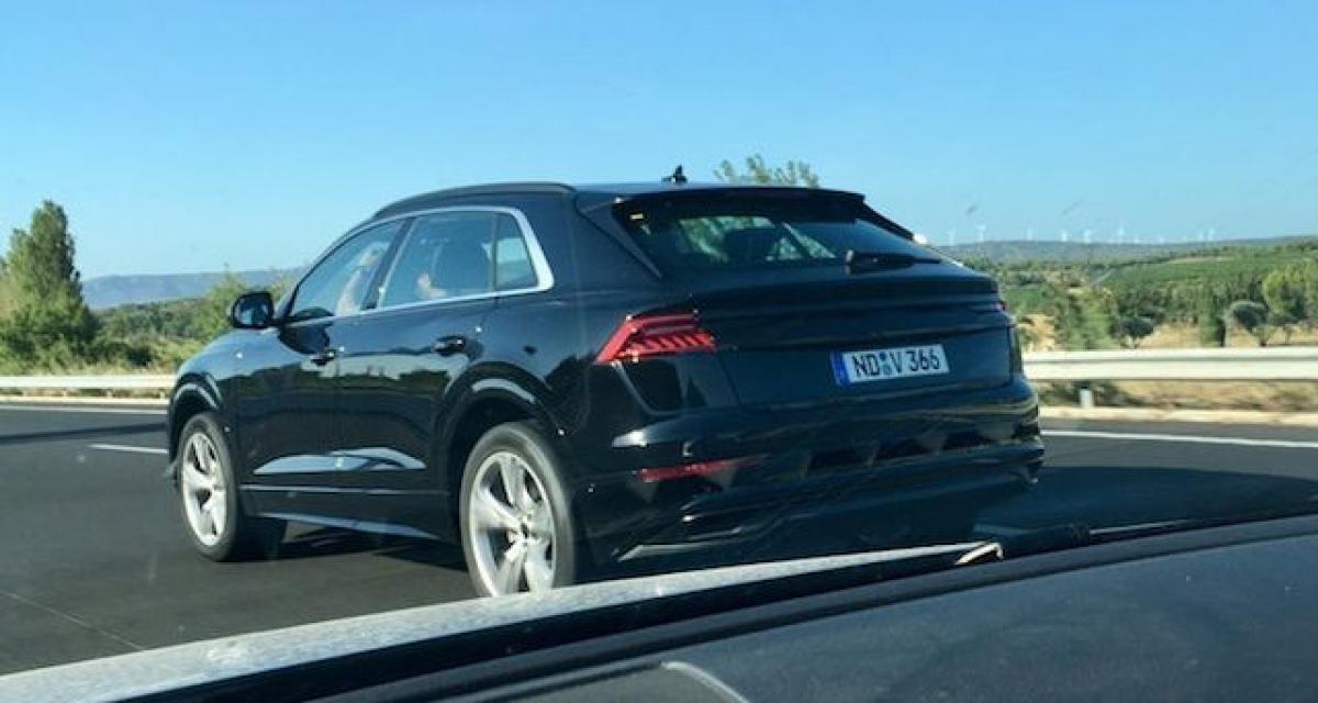 C’est un utilisateur d’un forum automobile italien qui a eu la bonne idée de photographier ce Q8 en vadrouille. Pris de trois-quart arrière gauche, le cliché révèle un pare-chocs arrière massif intégrant des sorties d’échappement dont le dessin est proche du concept-car. La silhouette générale apparaît massive, rien d’étonnant vu que le modèle est appelé à devenir un des deux portes-drapeaux de la marque avec l’Audi A8. Bien que le prototype ne permette pas de confirmer si la bande lumineuse sera présente sur la version finale, il serait surprenant qu’elle ne le soit pas.