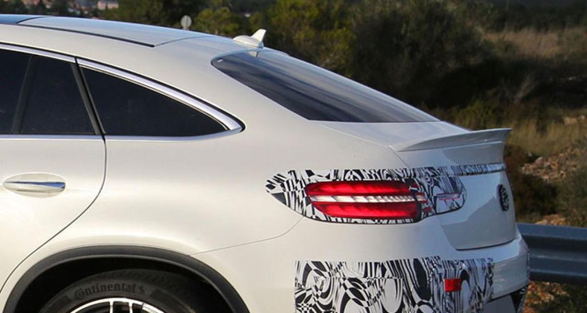 Les prototypes se sont à présent débarrassés de leurs camouflages les plus lourds, et ne subsistent que quelques autocollants, qui masquent ici l’identité complète du modèle : Mercedes-AMG GLE63 Coupé… Car bien entendu il aura droit lui aussi à sa version AMG.