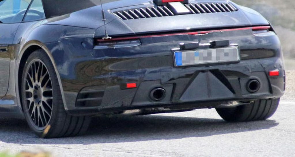 Après le coupé, c’est au tour du cabriolet de la prochaine Porsche 911, capote fermée, d’être photographié lors de tests routiers menés sous une forte chaleur.