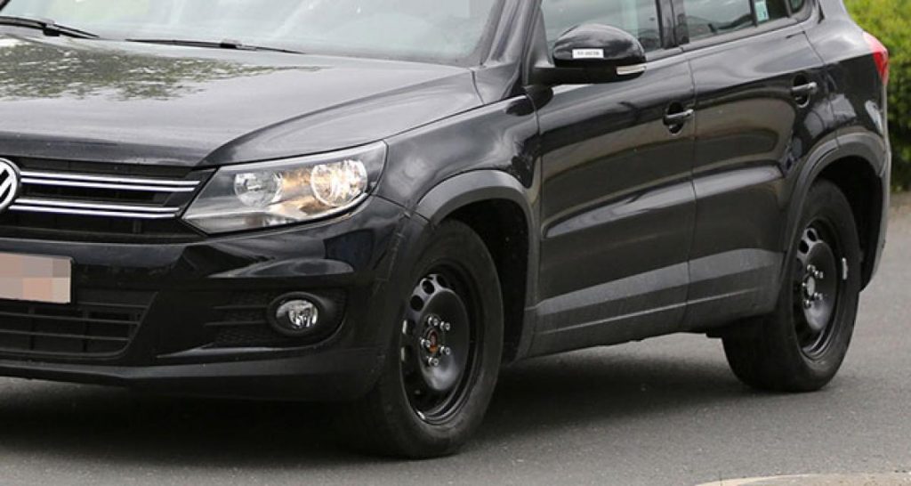 Les tests des prototypes ont déjà commencés, et les premiers exemplaires sont des mulets arborant une carrosserie de Tiguan. Ils trahissent leur vocation avec les voies plus étroites.