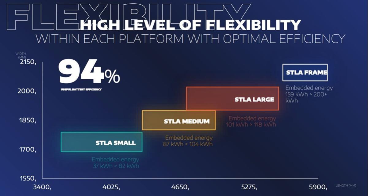 Les voitures petites et compactes et les véhicules utilitaires légers mesureront une longueur comprise entre 3,50 et 4,35 mètres. Des batteries de 32 à 82 kWh peuvent être installées dans le soubassement. Un module d'entraînement (moteur) de 70 kW sera installé dans les petits modèles, tandis que les modèles de plus grande envergure basés sur la plate-forme STLA Small auront une motorisation capable de fournir entre 125 et 180 kW.