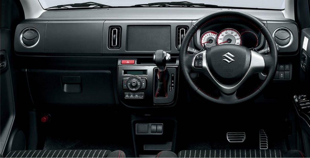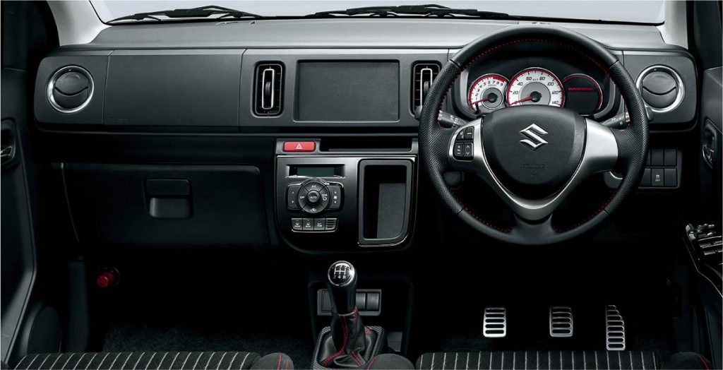L’Alto Works est très reconnaissable grâce à ses jantes spécifiques en teinte canon de fusil et l’indispensable bande autocollante en bas de caisse. Cette aristocrate de la classe kei est disponible à partir de 1 509 840 yens, et peut recevoir, mais on se demande l’intérêt, la boîte automatique de la RS Turbo. Elle est également disponible comme c’est le cas pour la majorité des keis en version quatre roues motrices à destination des préfectures japonaises les plus frigorifiées.