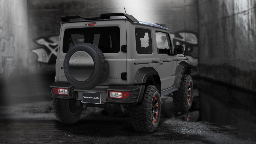 Wald ne pouvait ignorer le phénomène, et nous propose donc un Jimny Black Bison. Le petit 4×4 japonais se voit donc doté d’attributs plus courants sur les Classe-G, Defender ou Wrangler (peu importe le préparateur) : aileron, rampe de LED sur le toit, ailes élargies… Le moteur 1.5 102 ch (qui équipe le Jimny dans sa version « non Kei » – Jimny Sierra – au Japon) est à l’aise sous le capot boursouflé. Et pour finaliser le tout, il profite d’imposantes roues chaussées de pneus tout-terrain et d’une garde au sol généreusement relevée. Et les clignotants ajoutés sur le haut du capot renforcent l’impression d’être face à un mini Mercedes G 4×42.