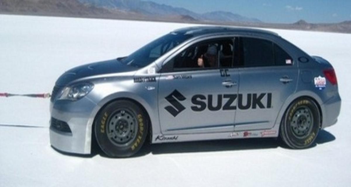 Suzuki avait prévenu son intention d’inscrire son nom tout en haut des tablettes avec la ferme intention de truster la première place dans la catégorie « Blown Gas Coupé ». Au volant de la Suzuki Kizashi Bonneville Special 2010 modifiée de l’American Suzuki Motor Corporation, Sam Mitani de la revue Road & Track a donc finalement inscrit la Kizashi dans le livre des records (et a lui-même joint le club des 320 km/h), atteignant 327,856 km/h lors du Bonneville Speed Week 2010. Au passage la berline japonaise efface des tablettes l’ancien record de 325,572 km/h. Bref une performance épicée sur un lac salé !