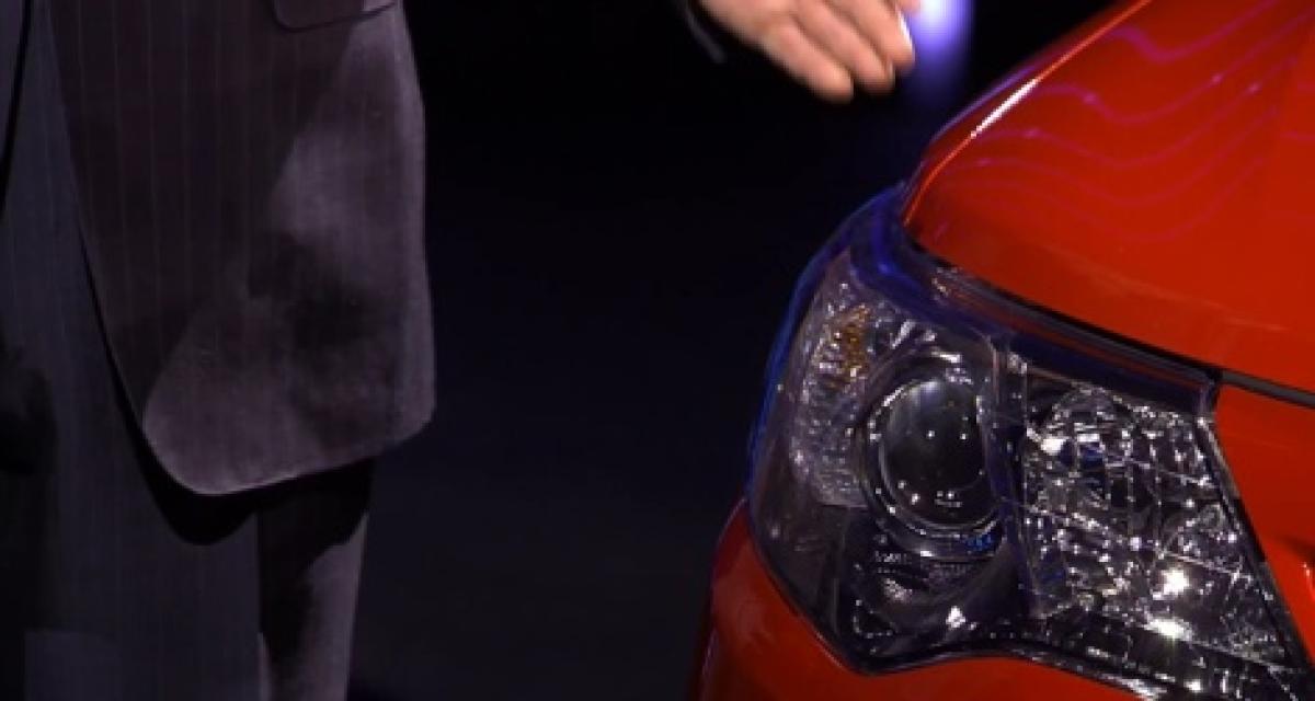 Au lieu du scénario typique ci-dessus, les rois du marketing Toyota US ont mis à contribution le PDG Akio Toyoda, à l’occasion d’une convention nationale des concessionnaires. Un prompteur, un projo, un micro-cravate, un plan fixe et hop, à vous de jouer Boss. Le résultat n’atteint sans doute pas la maîtrise d’un Steve Jobs des grands jours, mais le message passe. « Meilleure Camry de tous les temps », « Va dépasser les attentes », « Voiture remarquable en termes de comportement, sécurité et consommation », « Sortira cet automne ».