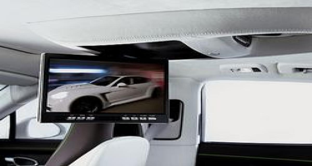Un système de divertissement intégré au plafonnier est aussi proposée. Cette unité reçoit en plus un rembourrage et un habillage réalisés en cuir et Alcantara. Le grand écran de 10,2 pouces est réglable et est relié à un lecteur DVD.