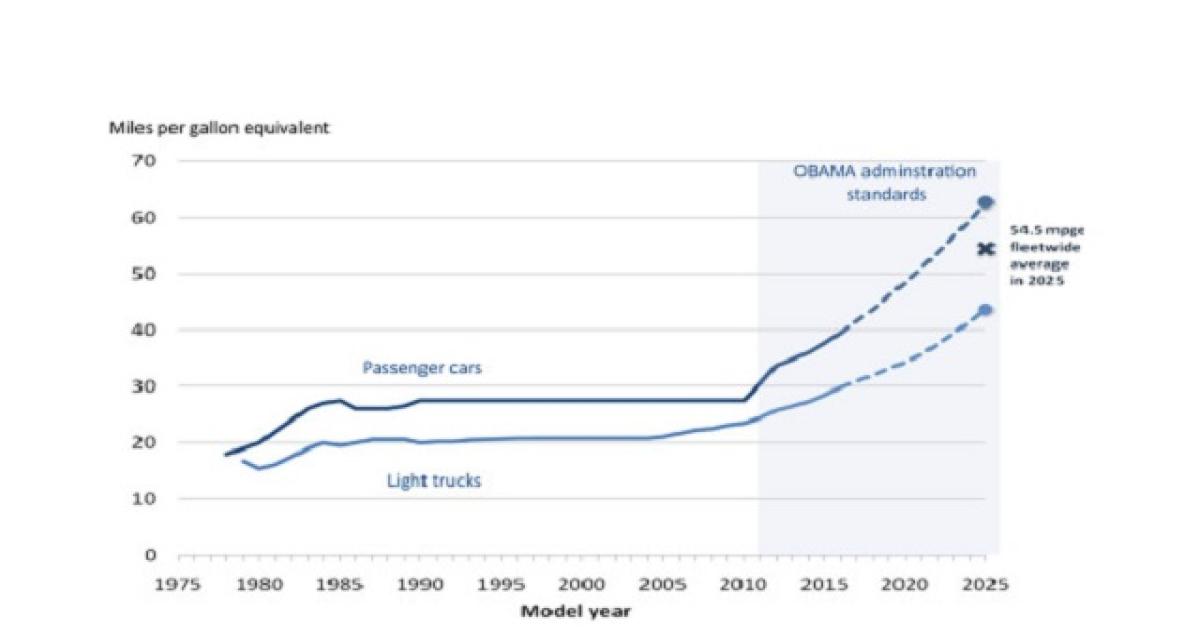 Selon les règles mises en place par l’Administration de l’ancien président Barack Obama , des sanctions plus élevées devaient débuter à partir de l’année modèle 2019, mais Trump a fixé la date d’entrée en vigueur à l’année modèle 2022. La NHTSA envisage quant à elle de rétablir la règle Obama.