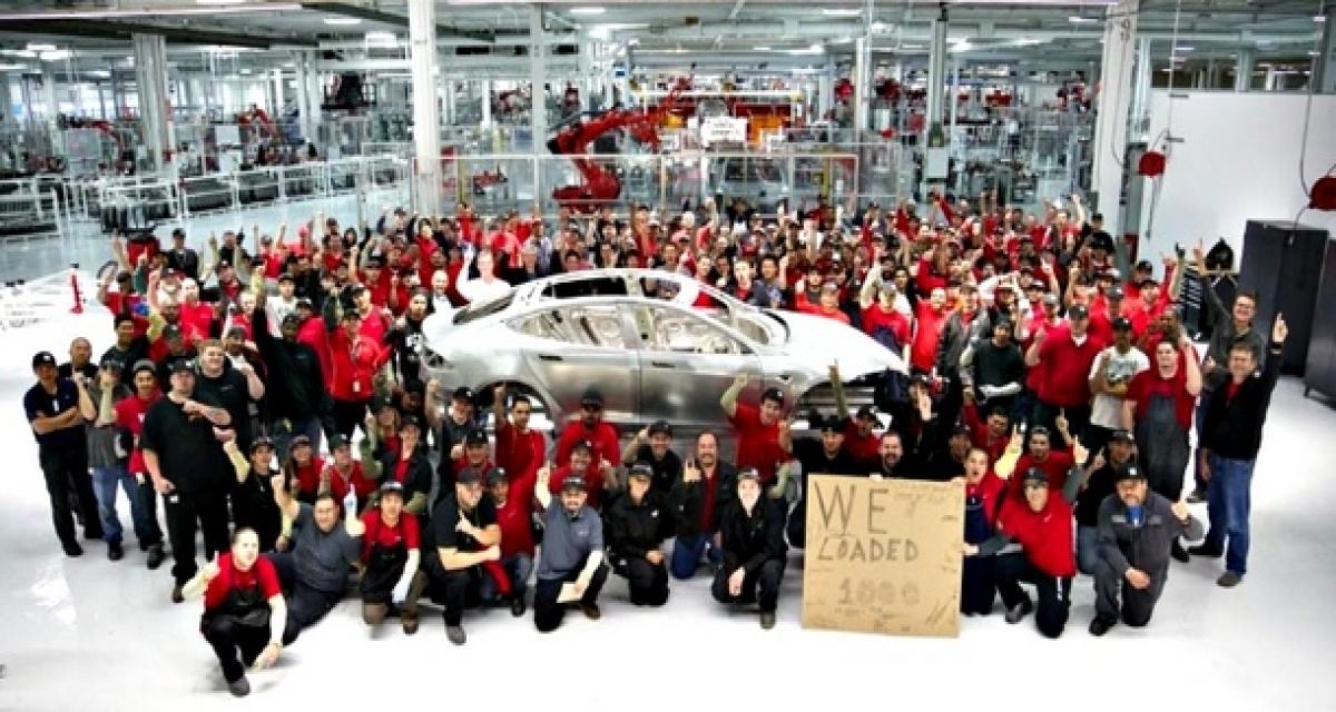 Une photo de famille, une inscription sur un bout de carton et un message et une image sur un réseau social plus tard, Tesla salue la production de la millième berline électrique S. Enfin presque millième…En effet, comme l’illustre le cliché, on salue ici la millième carrosserie et non pas plus concrètement la millième auto. Évidemment qui dit mille carrosseries ne signifie pas mille autos finalisées intégralement et encore moins mille livraisons aux clients.