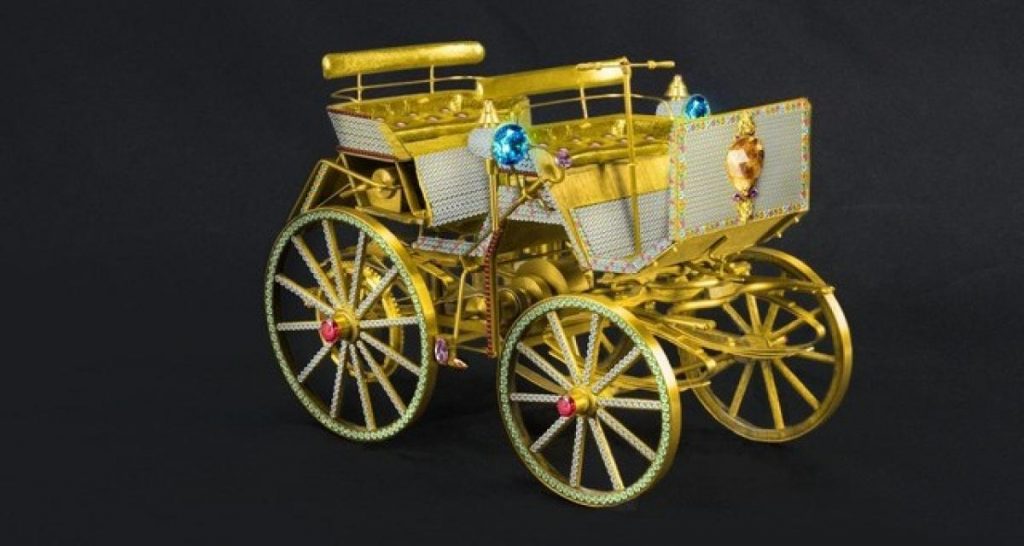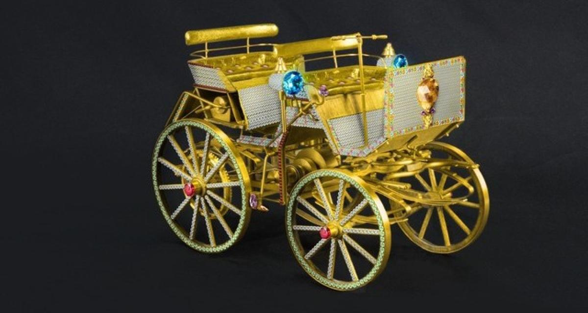 Le joaillier FF Fancyfancies souhaite rendre hommage aux 130 ans du Motorkusche. En 2015, ses bijoutiers écument les ventes de pierres précieuses de Sotheby’s et Christies. Cette réplique, baptisé The Missing Link (car c’est le chainon manquant entre automobile et carrosse) est sertie de 3 000 diamants. FF Fancyfancies estime qu’il vaut 260 millions de francs suisse (243 millions d’euros.) C’est le premier d’une série d’œuvre destinés à montrer le savoir-faire du joaillier.