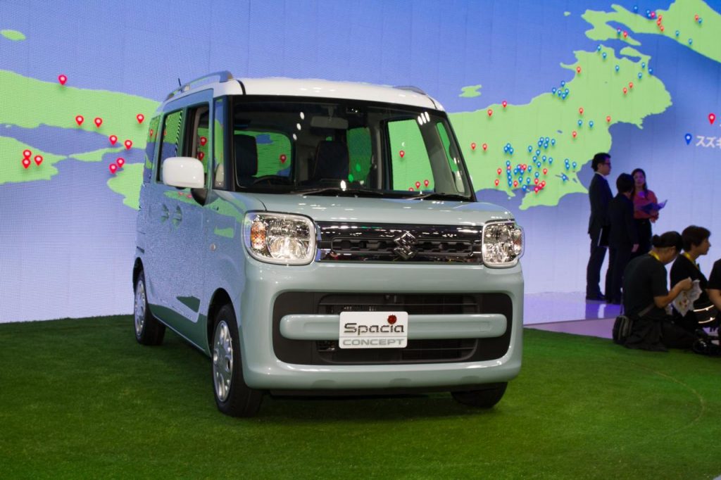 Le Suzuki Spacia a succédé au Palette il y a 4 ans. Long de 3,40 m environ, il embarque passagers et bagages dans un espace très généreux. Concrètement, ce concept Spacia reprend les dimensions de la version actuelle mais modernise le dessin.