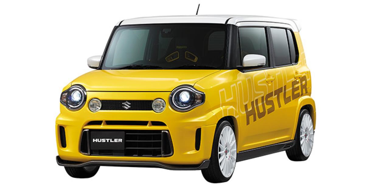 Deux autos qui sont bien évidemment des keis. Le Hustler, vu pour la première fois au Tokyo Motor Show, vient d’être mis en vente en concession, et Suzuki utilise le Tokyo Auto Salon, comme souvent, pour la promotion de son nouveau modèle. La version présentée en vedette est affublée d’un kit carrosserie qui n’est pas sans rappeler ce que les tuners européens font subir à intervalle trop régulier aux gros SUVs de luxe. Dans ce cas de figure, la petite taille de la voiture est plutôt un atout.