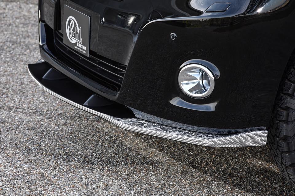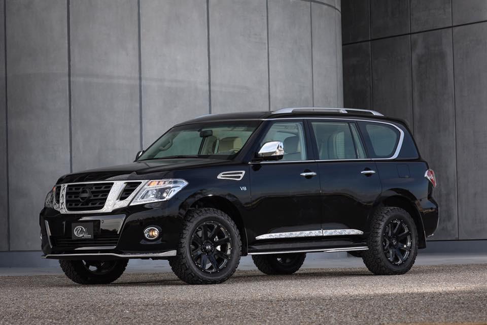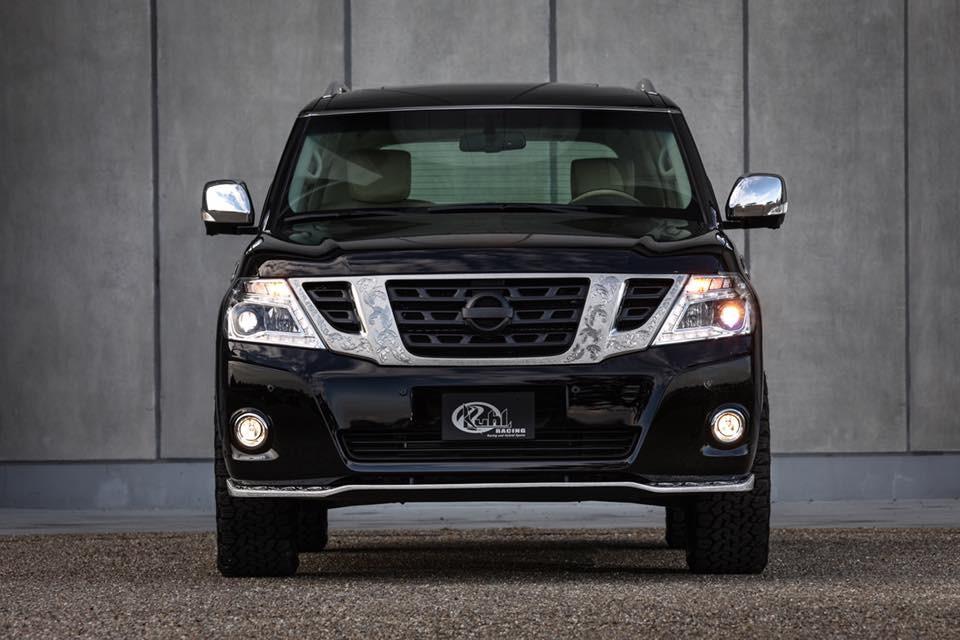 Son arme de séduction massive, c’est un Nissan Patrol/Armada avec un kit carrosserie : jantes Verz (montées sur des pneus Falken), bouclier avant (intégrant une lame chromée et des antibrouillards), calandre gravée, rétroviseurs chromés, bas de caisse chromés et gravés, bouclier arrière et aileron. Curieusement, il n’est pas surbaissé. A croire qu’ils ont eu des scrupules… Comme d’habitude, Kuhl Racing se contente d’en montrer des photos. Le texte, ce sera pour le Tokyo Auto Salon. Un Land Cruiser Prado est également au programme. Ce sont les deux premiers 4×4 à passer entre les mains du préparateur.