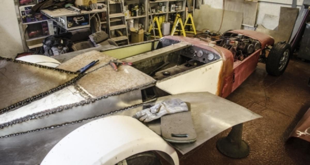Le projet doit aboutir très prochainement et c’est un tour de force que de construire cette réplique – plus ou moins exacte – en 6 semaines seulement. Pour la carrosserie, Saunders récupère des morceaux de coques de bateau, un pare-choc arrière de MX5 (!) ou même des morceaux d’une voiture de course d’Alan Jones de 1975. Le 1,6l d’origine Ford de la Westfield est conservé ainsi que l’antique boîte à 4 rapports.