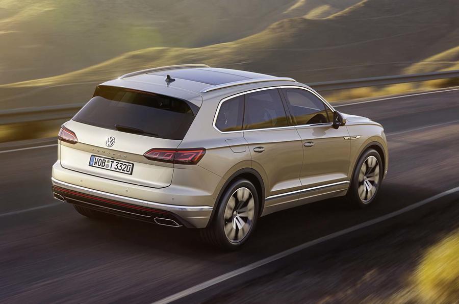 Bien que plus long de 7,7 cm et plus large de 4,4 cm, le nouveau Touareg apparaît plus compact (plus massif) avec sa ceinture de caisse très marquée et sa surface vitrée réduite. À l’arrière, la simplicité des lignes tranche avec la face avant et donne au Touareg un petit air de Cayenne. L’accroissement des dimensions a permis à Volkswagen d’augmenter la capacité du coffre de 113 litres pour atteindre 810 litres.