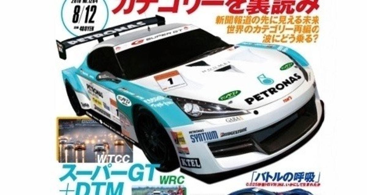 Malgré une audience essentiellement limitée au Japon, la série Super GT est très importante pour Toyota vis-à-vis de sa clientèle locale. L’image en ouverture de ce post, et qui est la couverture d’Autosport, représente ce que pourrait donner une FT-86 engagée dans ce championnat. La version de série de la voiture qui représente Toyota à ce jour, la Lexus SC 430, a vu la fin de la production le mois dernier et celle de course ne devrait pas continuer éternellement. Autosport prédit que sa remplaçante sera une FT-86 même si les pronostics sont hasardeux pour le moment, alors que le Super GT et le DTM sont en grande discussion pour l’unification des règlements à l’horizon 2013. C’est loin d’être gagné, mais si ça se fait Toyota pourrait jouer sur les deux tableaux.