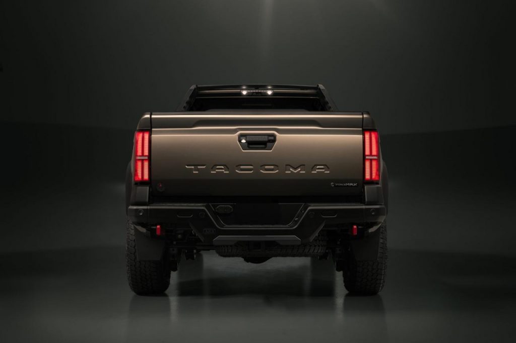 Le Tacoma est plus sobre avec une calandre plus petite et des phares plus fins. Ils sont rejoints par une serre familière et une carrosserie fortement stylisée qui fait écho au plus gros pick-up. Le Tacoma se distingue par ses spoilers de toit et de hayon intégrés. Pas moins de 8 variantes seront proposées, dont le TRD Sport va dans une direction différente grâce à une écope de capot, des composants de couleur de carrosserie supplémentaires et des roues plus grandes de 18 pouces avec une finition noire. Le TRD Off-Road peut être équipé de pneus de 33 pouces, tandis que le Limited est habillé de chrome et comprend des marchepieds électriques ainsi que des « phares de signature ».