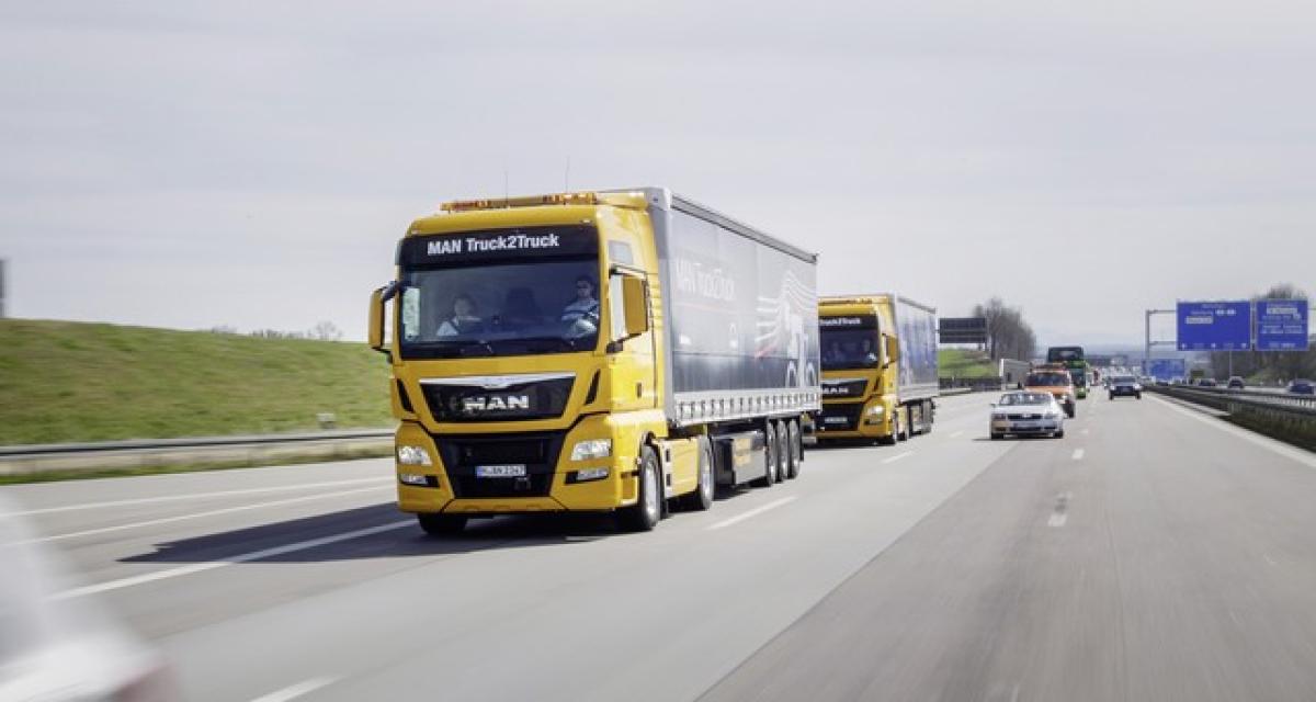 Suite et fin du truck platooning avec MAN. Le constructeur allemand va envoyer deux camions, de Munich à Rotterdam, où aura lieu la grande conférence sur les camions en peloton.