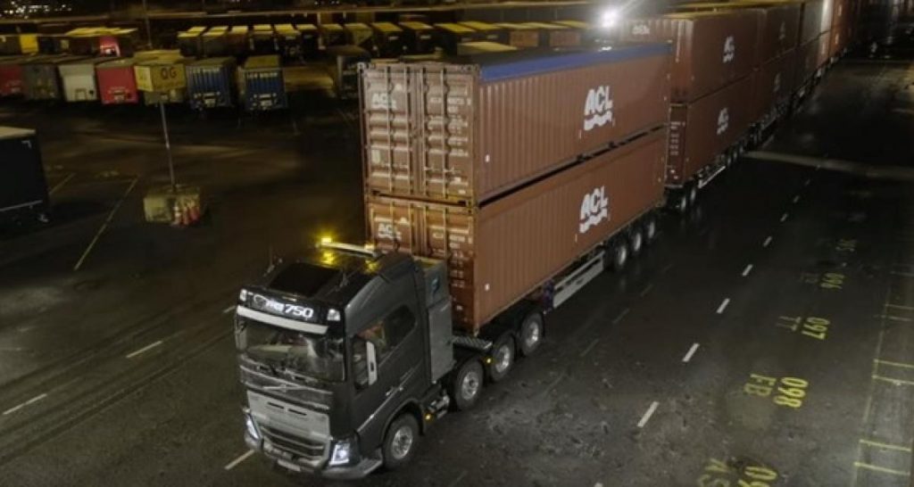 Malgré la charge plus qu’impressionnante, le camion est parvenu à tirer comme prévu l’ensemble dans le Roro Terminal de Göteborg avec presque aucune difficulté.
