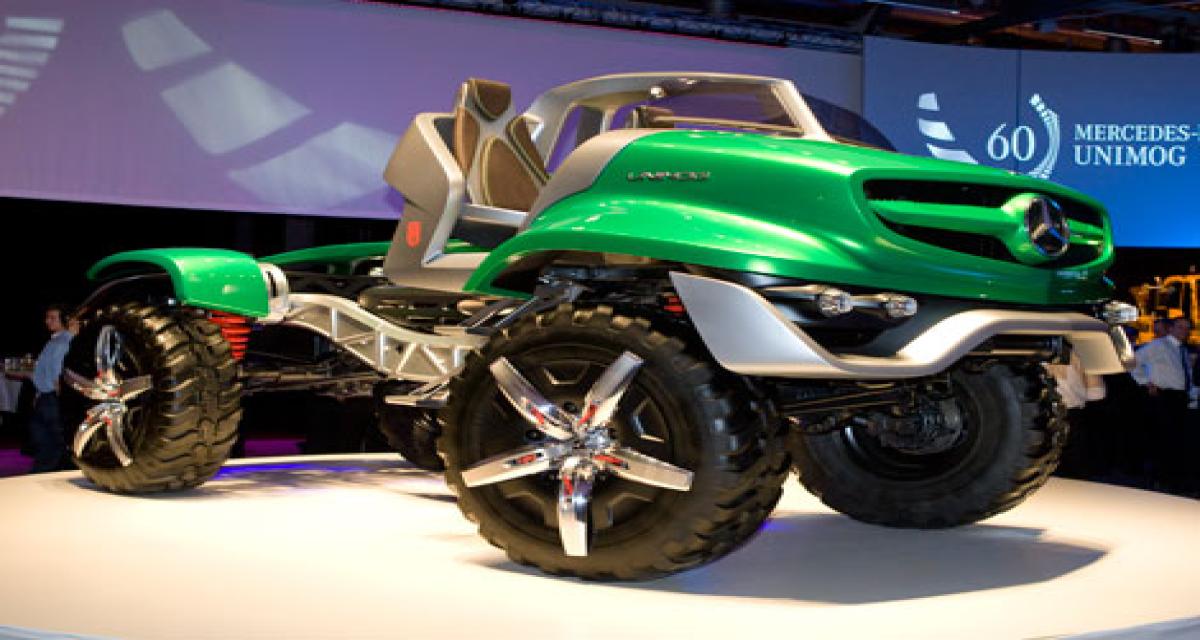 Le 3 juin 1951, un véhicule bien particulier débutait sa carrière, le Mercedes Unimog (Universal-Motor-Gerät). 60 ans plus tard, ce modèle occupe toujours une place à part sur le marché, et célèbre son anniversaire par un concept-car mettant toujours plus en valeur ses capacités dans les terrains les plus difficiles.