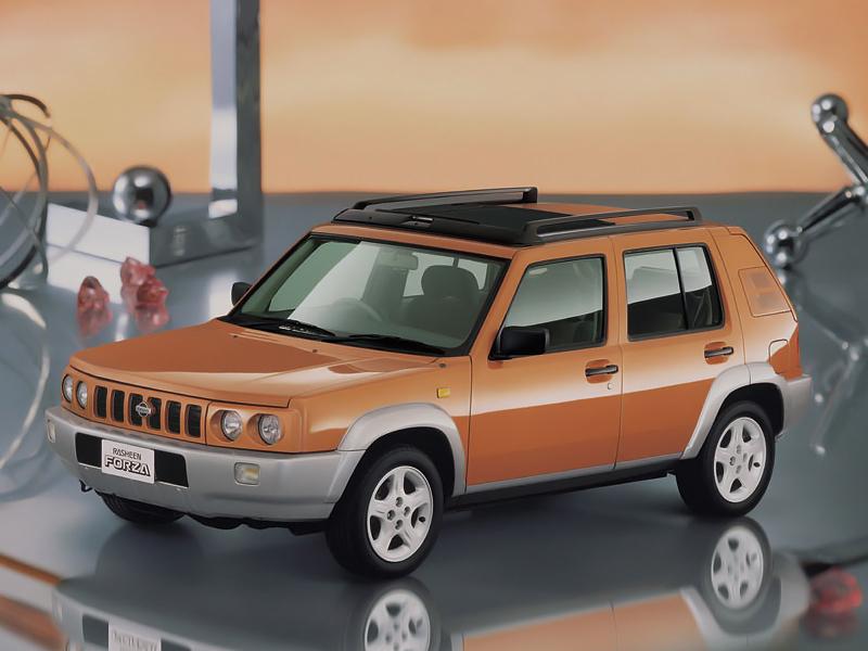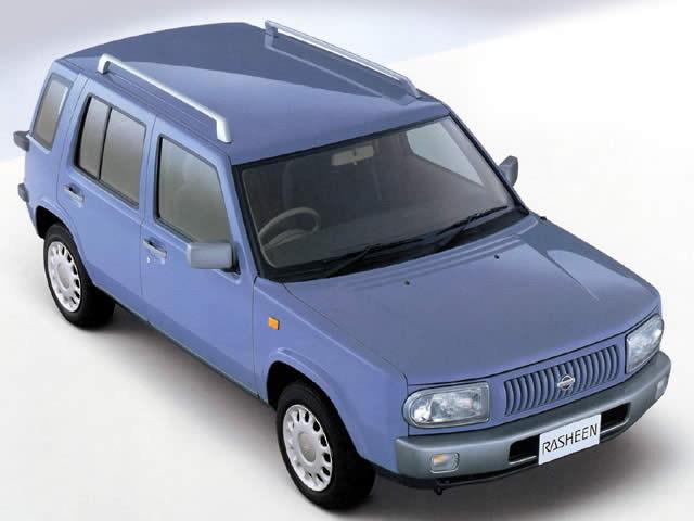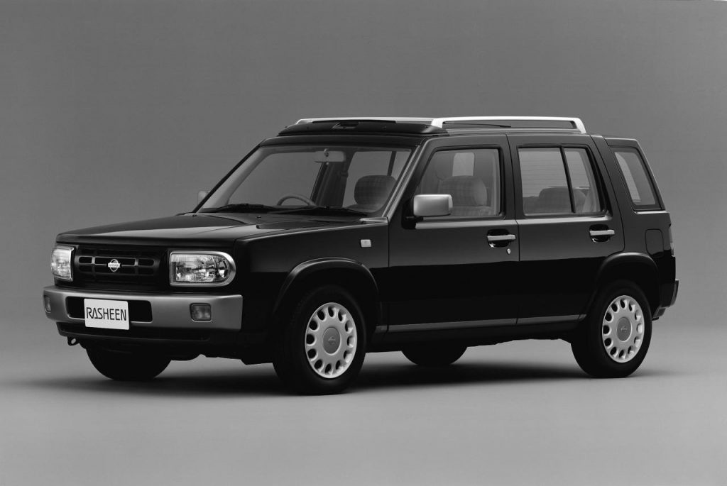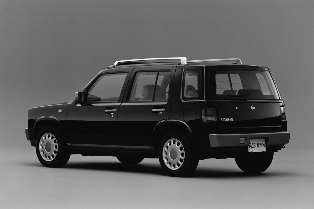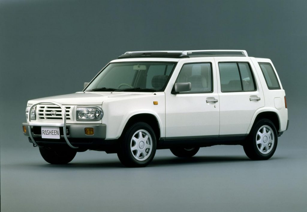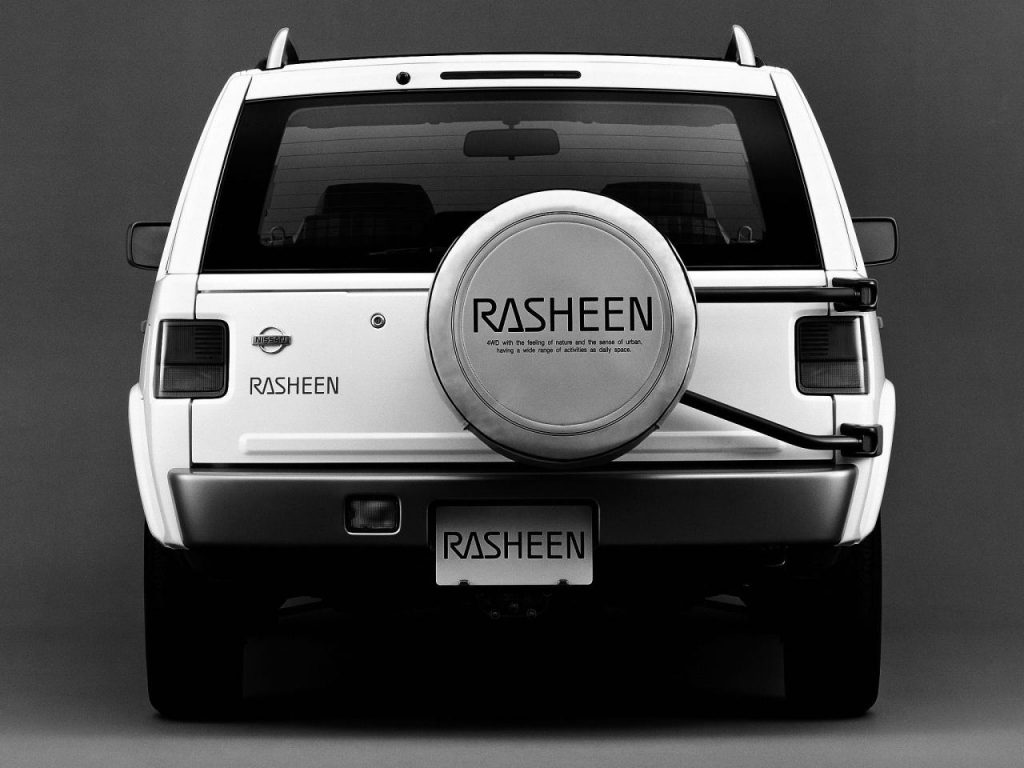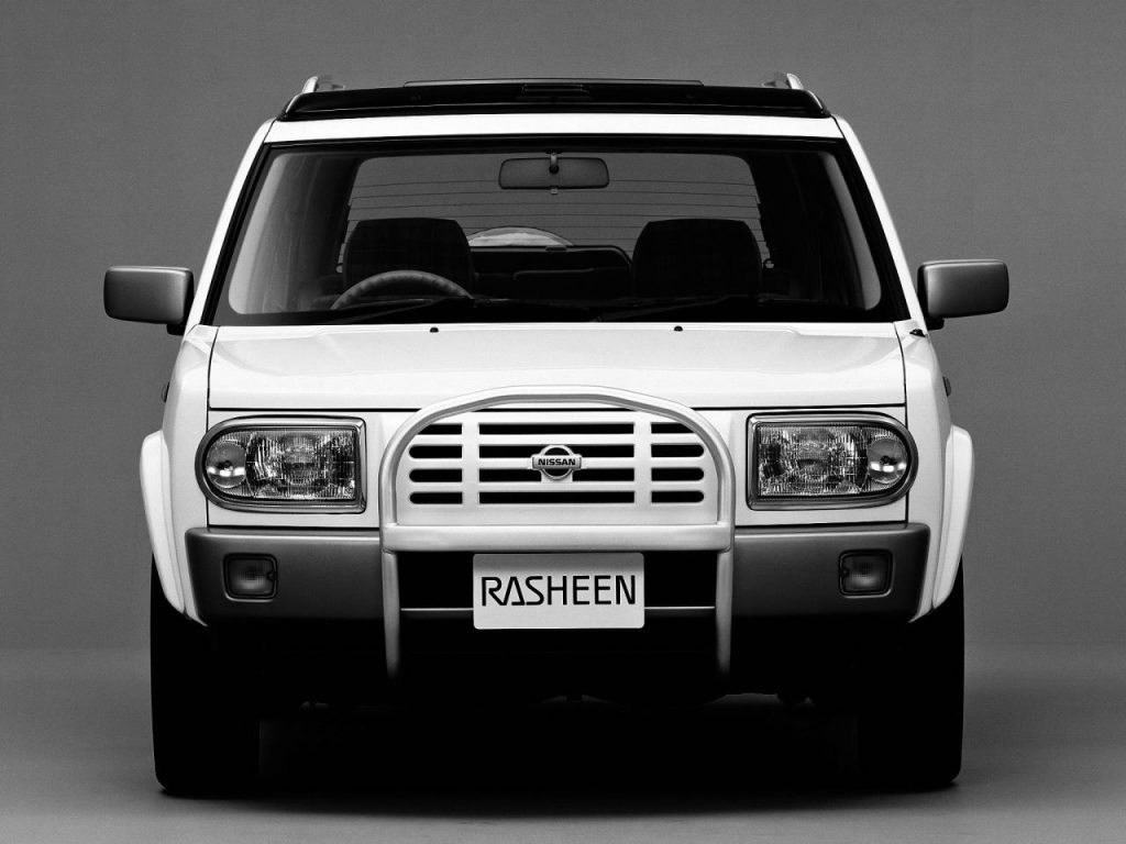 Présenté sous forme de show-car au salon de Tokyo 1993, il arrive dans les concessions « Nissan Red » à la fin de l’année 1994. Il s’agit d’un modèle compact de 3m98, qui arrive donc en même temps que le Toyota Rav4 (3 portes alors), mais avec un esprit bien différent. Le Nissan Rasheen ne revendique en effet aucune réelle prétention au tout-terrain. Sa plateforme est en effet celle d’une classique berline, la Sunny, mais avec une transmission intégrale ATTESA. Un système utilisant un visco-coupleur pour transférer le couple à l’arrière en fonction de l’adhérence. Autant d’éléments qui font que l’on peut considérer le Rasheen comme le premier crossover…