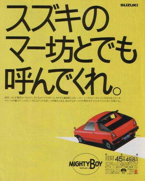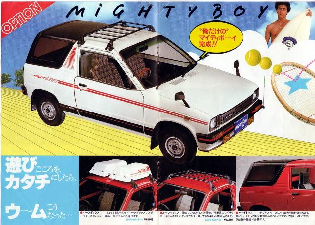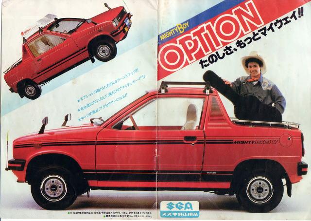 En 1982, le nouveau coupé Cervo SS40 est présenté. Et Suzuki a l’idée originale d’en décliner un petit -pick-up. Le Suzuki Mighty Boy, seul en son genre.