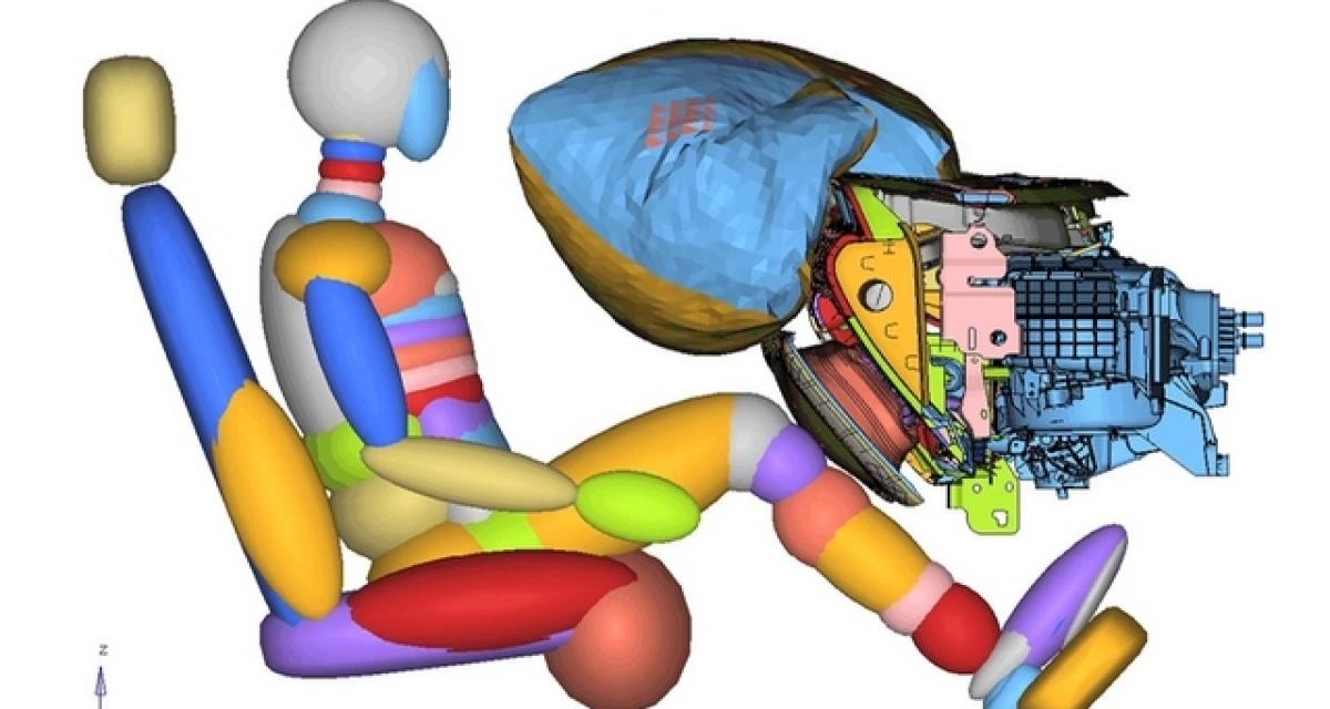 Dans les faits ce nouveau système, déploiement horizontal standard, intègre un sac de gel au silicone souple qui est implanté entre les panneaux intérieur et extérieur de la boîte à gant. Il se déploie horizontalement en cas de collision comme tout airbag frontal.
